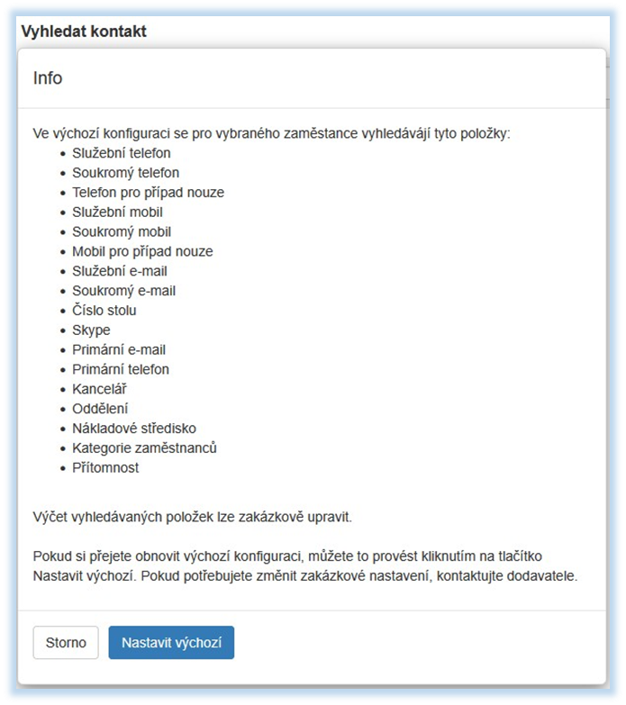 - V informačním panelu dostupném v Osobní informace / Vyhledat kontakt / Info byl upraven text upozornění a název potvrzovacího tlačítka.
