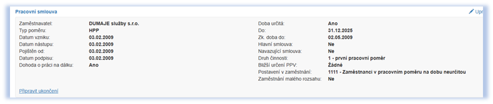 Současně byly upraveny odpovídající sekce pro nastavení v číselníku typů pracovních poměrů. Nastavení karty pro jednotlivé typy pracovních poměrů si zkontrolujte.