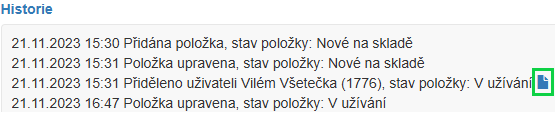 - jméno přebírajícího (uživatel položek = zaměstnanec oprávněný k užívání/vrácení majetku);